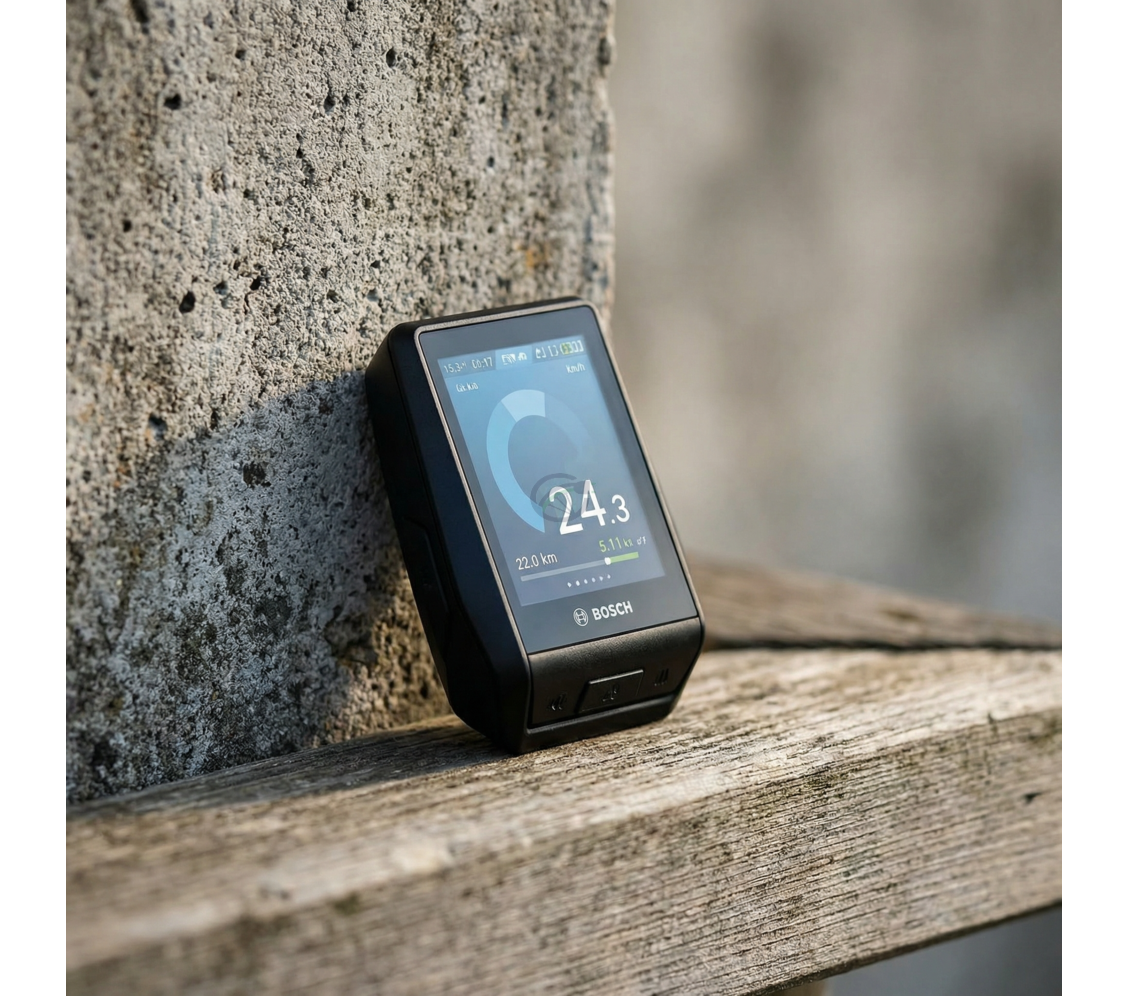 - Il display Bosch NYON dispone di un ampio touchscreen a colori da 3,2 pollici con regolazione automatica della luminosità per una perfetta leggibilità in tutte le condizioni.